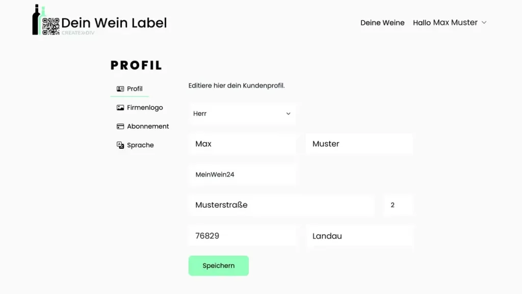 - Registrieren Sie sich unter https://controlpanel.dein-wein-label.de/register.